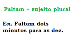 Mas atenção! Na segunda oração (a azul), o verbo faltar surge acompanhado de um verbo no infinitivo (terminar). O infinitivo toma o valor de um nome e por isso o verbo faltar fica na terceira pessoa do singular.